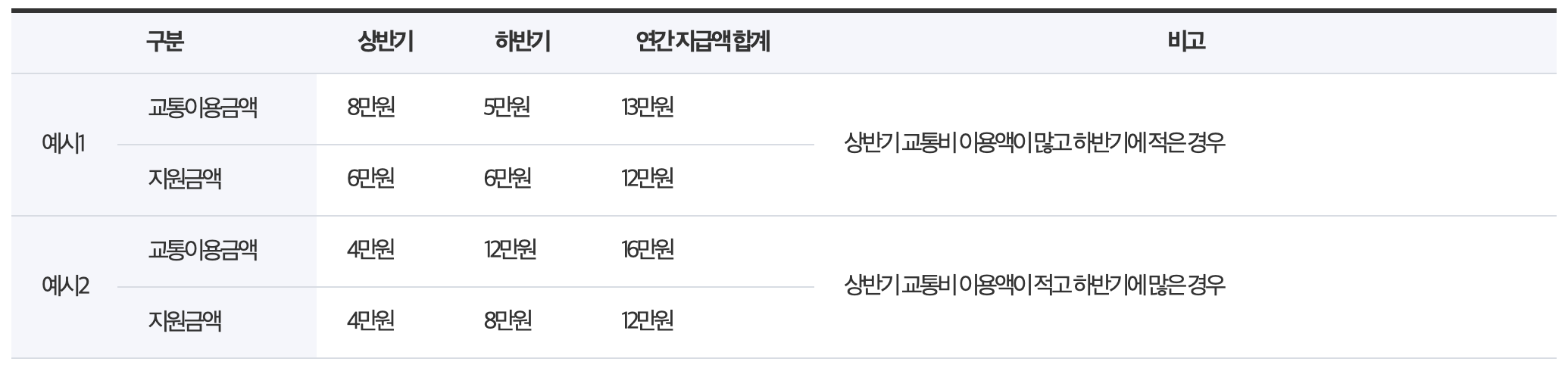 상반기에 청소년이 6만원을 초과해서 교통비를 사용해도 6만원까지만 지원해준다.