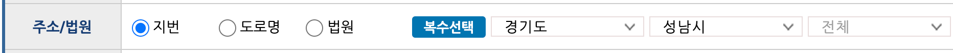 상가의 가격을 예측해 보기 위해 경매 물건을 하나 가져왔다. 지지옥션을 사용 중이라 지지옥션 기반으로 설명을 하겠다. 용도는 업무 및 상업시설로 설정하고 내가 가장 관심을 갖고 있는 동네인 성남시로 정했다. 이렇게 설정하면 경기도 성남시에 존재하는 상가에 대한 경매 물건을 전부 볼 수 있다.
