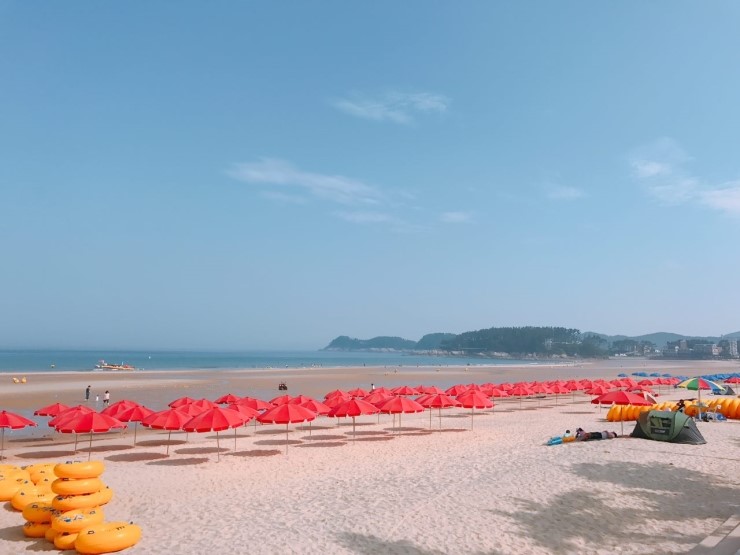 파라솔은 1만원에 하루종일 빌릴 수 있으며, 사람도 없어서 물놀이하기 너무 좋았다.