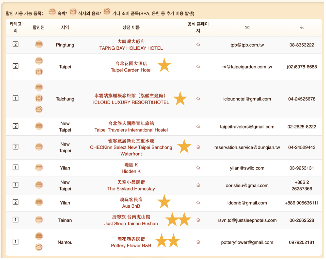 추첨에서 당첨되면 전자바우처나 숙박할인권을 가지고 대만을 즐기면 됩니다. 간단하죠?