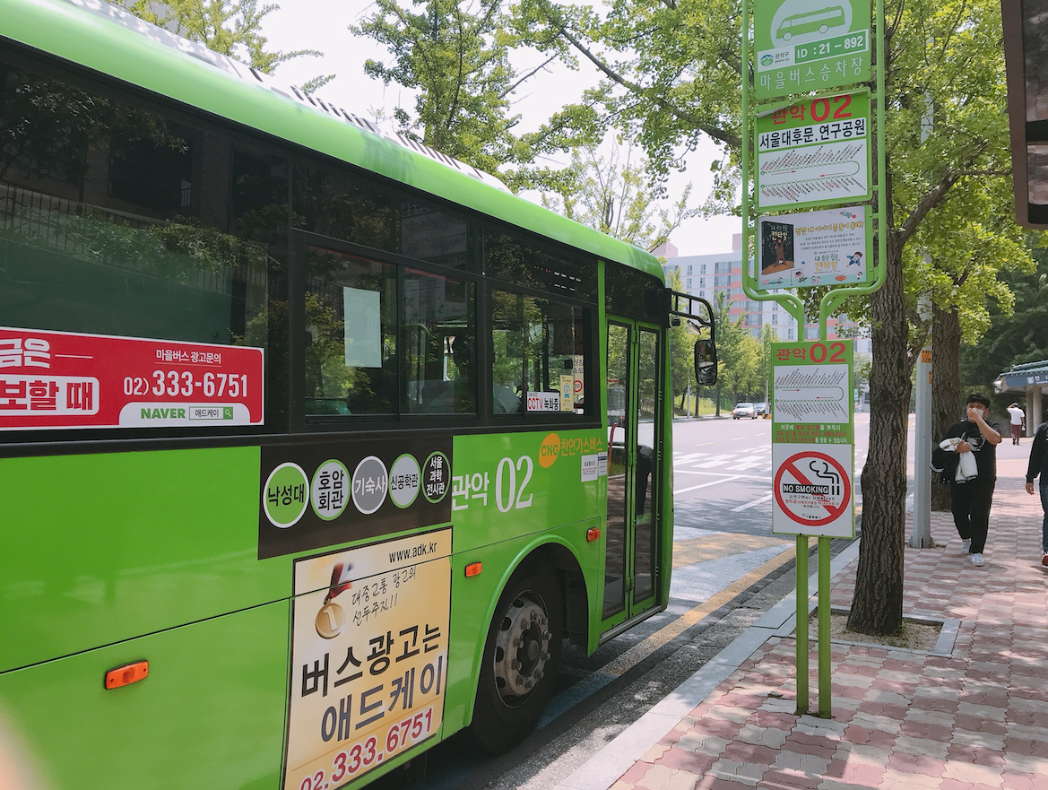 낙성대 4번출구에서 관악 02번 마을버스를 타고 서울대 후문, 연구공원에서 하차했다.