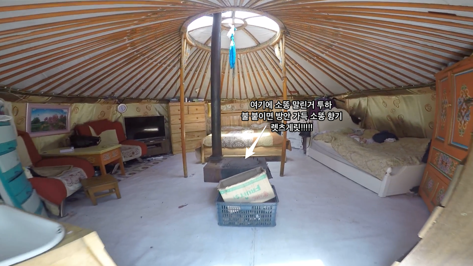 겨울에는 난로에 소똥을 넣어서 태우는데