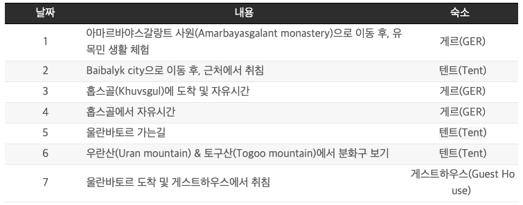 둘 다 가고 싶었지만, 고비사막을 가지 않은 건 지금 생각해도 아주 잘한 선택이라고 생각한다.