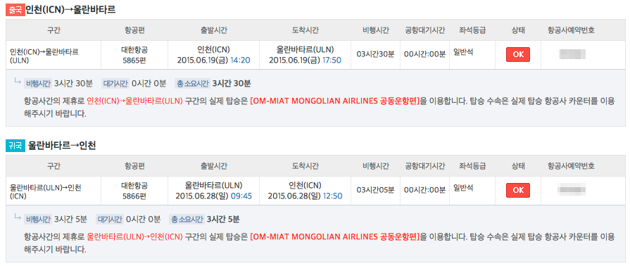 비행요금은 641,500원이며, 비행기 일정은 아래와 같다.