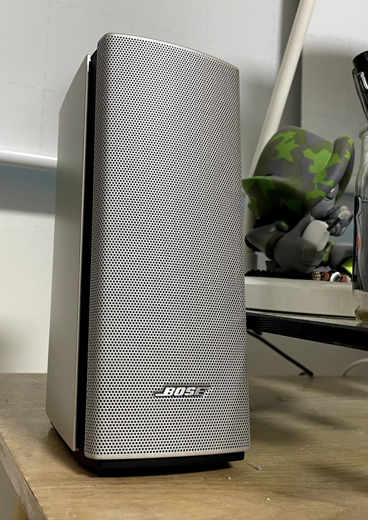 얼마 전에 들인 M1 맥북과 색상이 너무나 찰떡이다. 외관은 스테인리스 재질과 검은색이 절제되어 섞여있다. 스피커 아래쪽에 새겨진 BOSE라고 움푹 들어간 느낌도 스타일리시하고 전체적으로 젠틀한 느낌을 준다. 설치는 좌우를 연결하고 모니터 아래에 위치한 단자에 연결만 하면 바로 소리가 나와서 굉장히 쉽다. 아는 사람은 알겠지만 이번에 나온 M1맥북 에어로만 소리를 듣게 되면 약간 귀가 썩는 느낌이 든다. 이제 이 고통에서 벗어날 수 있어서 매우 행복하다.