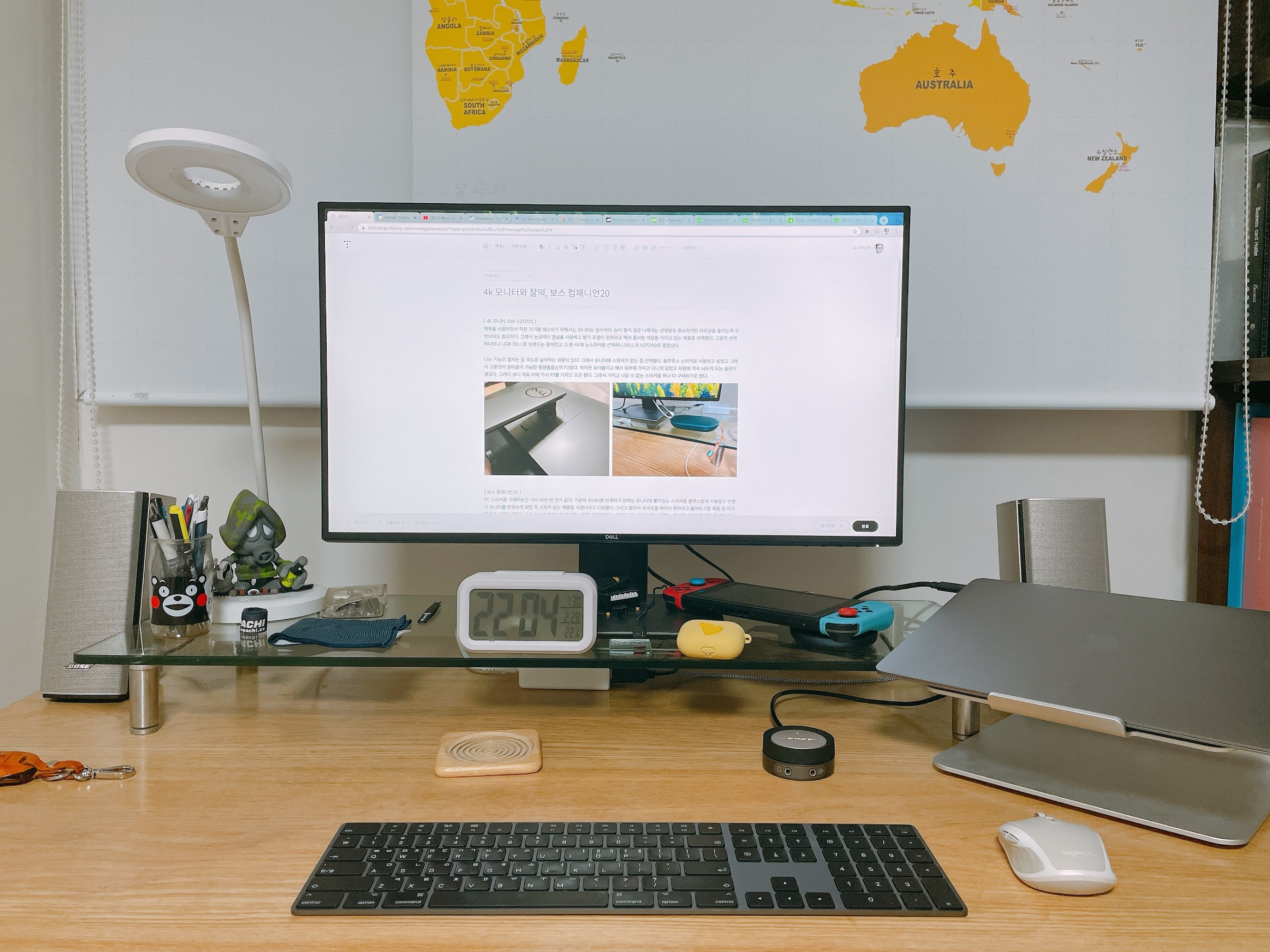 맥북을 사용하면서 작은 모니터의 크기를 해소하기 위해서는 모니터는 필수이다. 눈이 좋지 않은 나에게는 선명함도 중요하지만 피로감을 줄이는 게 무엇보다도 중요하다. 그래서 논글레어 패널을 사용하고 밝기 조정이 편리하고 맥과 흡사한 색감을 가지고 있는 제품을 선택했다. 그렇게 선택하다 보니 LG와 DELL로 브랜드는 좁혀졌고 그중 4K에 논 스피커를 선택하니 DELL의 U2720Q로 결정 났다.