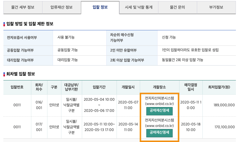 온비드라는 곳에서 입찰이라는 방식으로 판매를 한다.