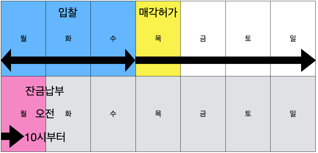 월~수요일에 입찰하고 목요일날 매각 허가가 난다.