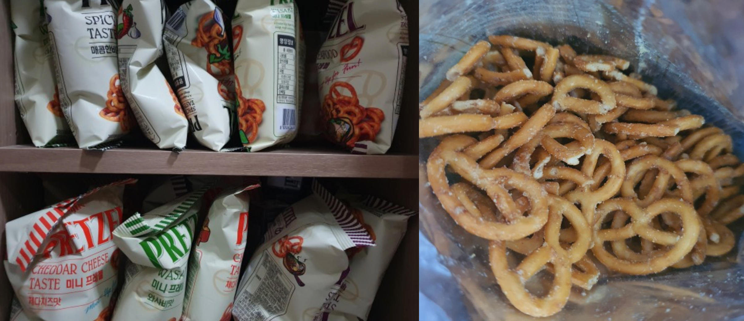 박스의 크기는 손바닥보다 작고 내용의 양은 국내 과자들 처럼 과대 포장되어 있지 않고 두툼하다. 맛은 프레첼에 초코가 묻어 있고 그 위에 약간의 소금이 더해진 맛이다. 그래서 단짠단짠 한데 단맛이 조금 더 강하다. 짠맛이 있어서 당연히 맥주에도 좋다. 다만 최애 상품이다 보니 약간 아껴서 먹게 되는 과자이다. 떨어질 때쯤 채워 넣고를 반복하며 아주 소중히 여기고 있다. 가격이 조금 부담되지만 직접 직구하지 말고 큐텐을 사용하여 더욱 싸게 구매하면 좋을 것 같다.