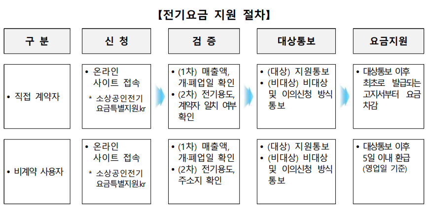 - 지원 금액은 사업자당 최대 20만 원의 전기요금 지원