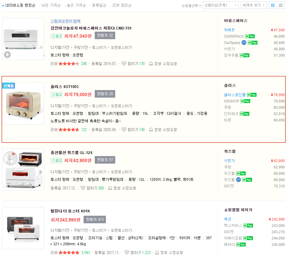 그래서 이런저런 검색어를 넣어보다가 나는 "스팀 토스터기"를 찾는다는 걸 알게 되었다.