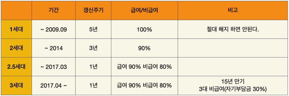 1세대와 2세대는 갱신주기가 5년, 3년이다.