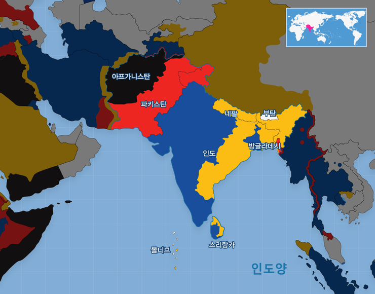 세계 지도를 보면 우리나라가 굉장히 안전한 나라에 둘러싸여 있다는 걸 알 수 있다.