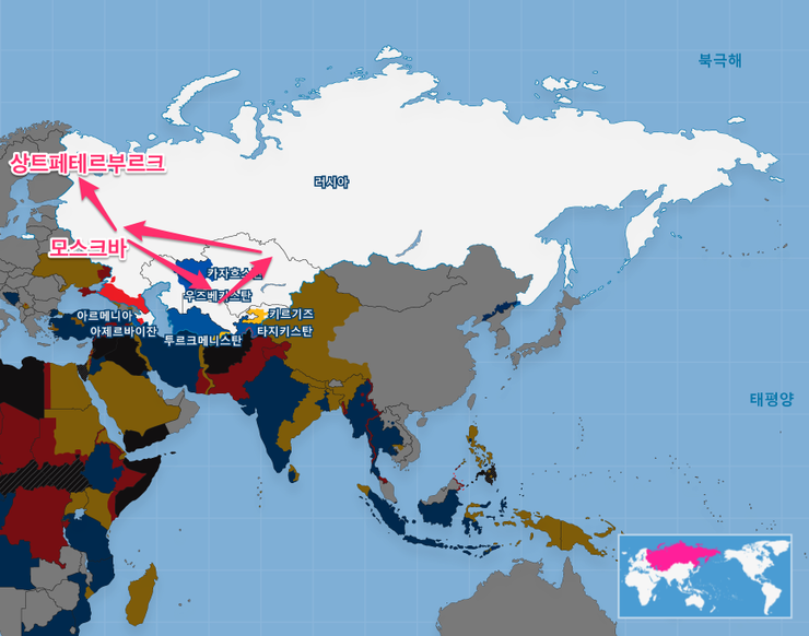 만약 세계일주를 하는 사람은 모스크바까지 기차를 타고 들어가서 스탄 국가를 둘러보고