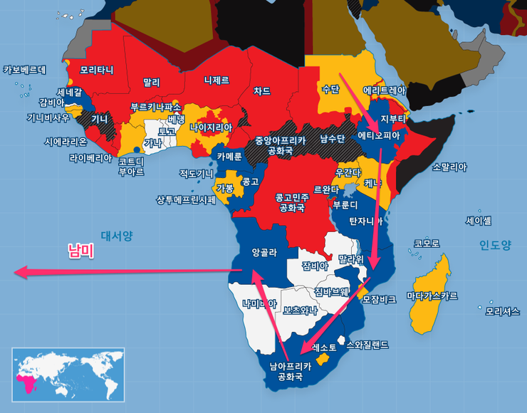 아프리카 여행은 위험지역이 다수 존재하기 때문에 매우 신중하게 이동해야 한다.