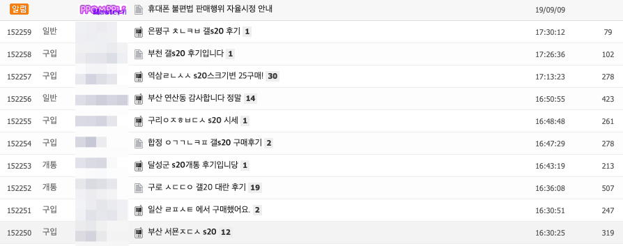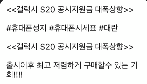 곳곳에서 s20을 싸게 구매했다고 홍보하고 있었다.