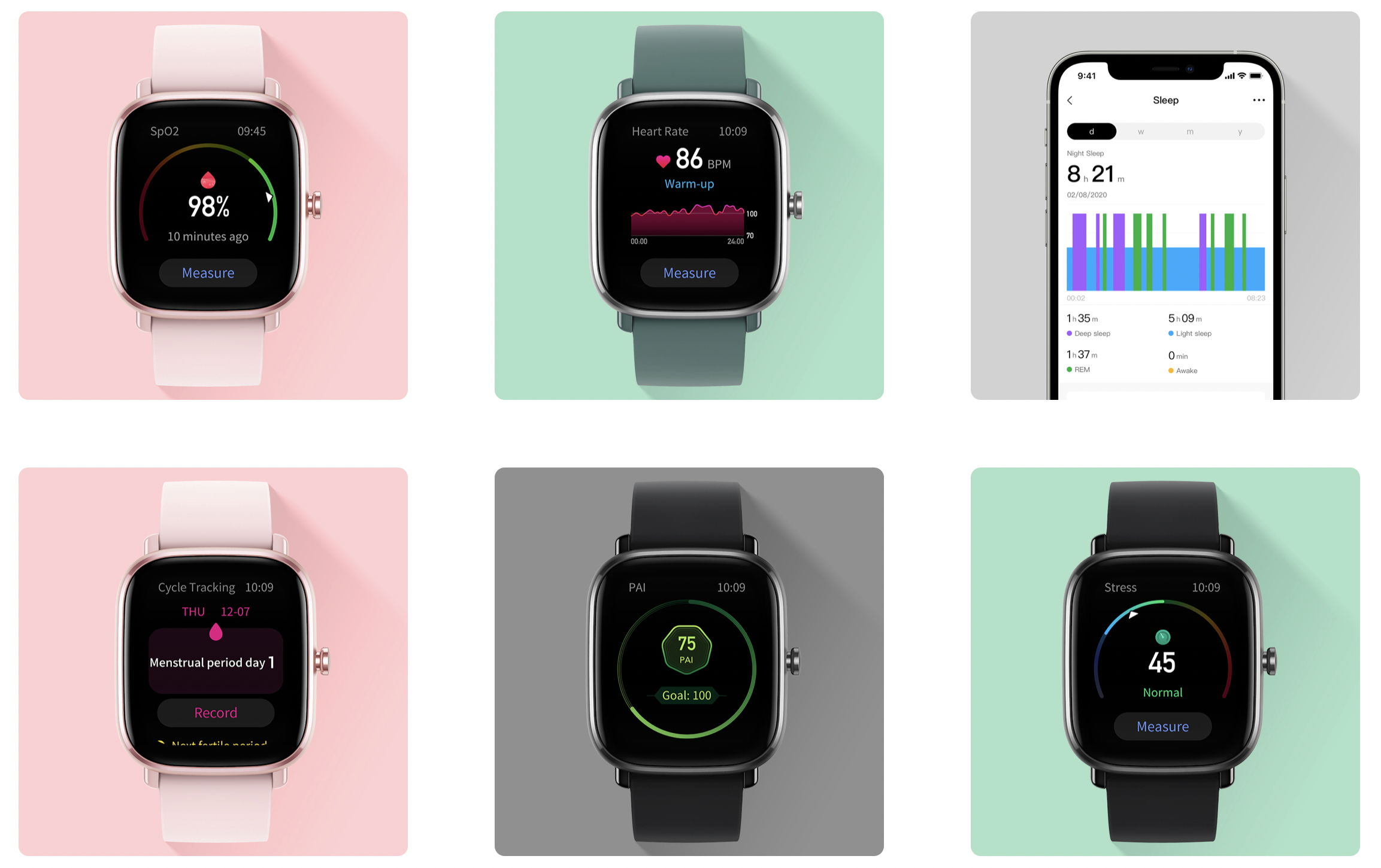 어메이즈핏 GTS2 mini는 타사와 비교해도 밀리지 않는 기능을 자랑한다. 혈중 산소농도 측정, 24시간 심박수 모니터링, 수면 분석, 여성 주기 추적, PAI 건강 평가, 스트레스 지수가 대표적이다. 이러한 모든 기능을 전부 사용할 것 같지는 않지만 타사에서도 지원하고 있는 기능이라는 점에서 전혀 뒤지지 않는 제품이라는 것을 알 수 있다. 이중에 나는 수면분석과 심박수를 가장 많이 사용하고 있다. PAI와 스트레스는 사실 크게 신뢰하고 있지 않고 있어서 사용을 하지 않는 편이다.