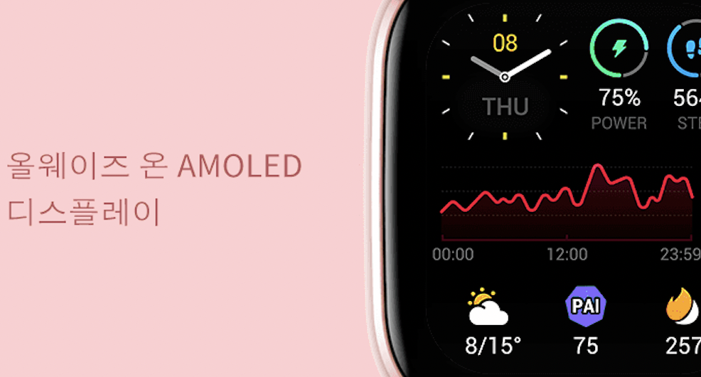 그들의 제품들은 항상 돌풍을 만들지만 요즘에는 스마트워치에서 큰 도약을 보여주고 있다. 내가 애플워치에서 그렇게 원하던 배터리 타임 2주가 가능한 스마트워치이다. 내가 애플워치를 구매하지 않는 이유는 단 하나 바로 배터리 타임이다. 배터리 타임이 18시간밖에 안 되는 시계를 50만 원이나 주고 구매하는 것이 도저히 납득이 되지 않는다. 수면 분석이 필요한 사용자에게 수면할 때는 충전을 강요하는 시계는 무언가 어긋나 있다. 하지만 어메이즈핏 GTS2 mini는 디스플레이가 아몰레드이고 450 니트의 밝기인데도 충전 없이 14일까지 사용이 가능하다. 물론 헤비하게 사용할 경우 7일 정도가 될 수 있다고 하지만 이마저도 너무나 넉넉하다.