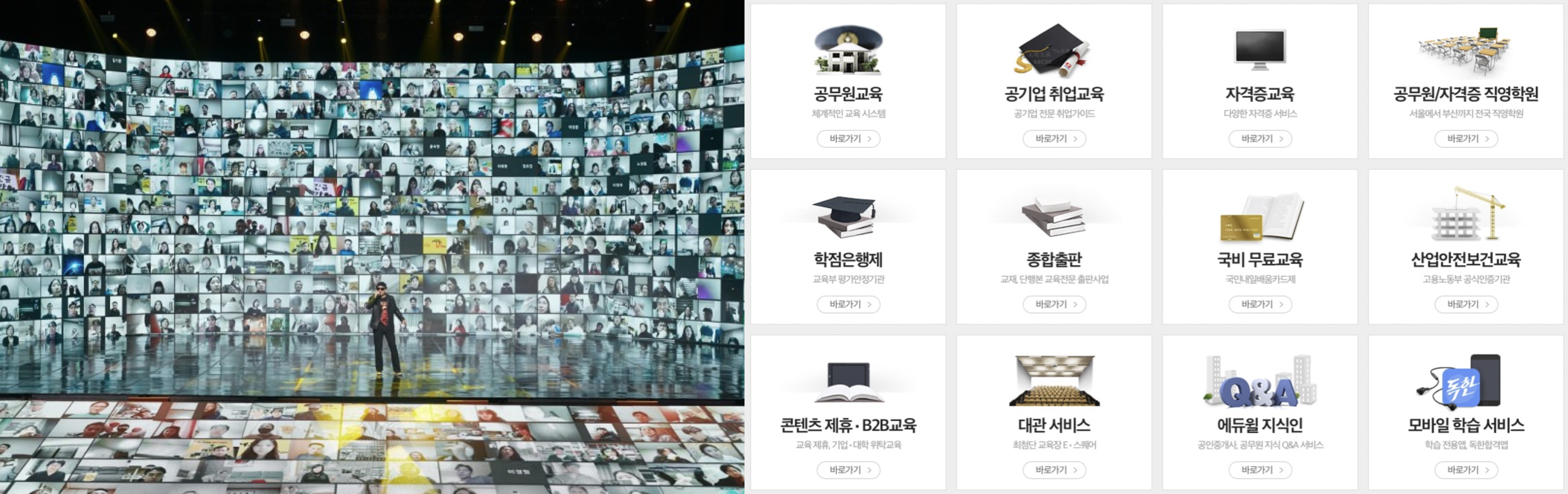 에듀윌은 공무원, 취업, 자격증 교육을 온라인으로 진행하고 있다. 29년간 회사를 지켜왔으면 300만 명의 회원수를 거느리고 있다. 대통령상 3관왕, 정부기관상 13관왕을 받았고 시험 합격자 수는 타의 추종을 불허한다. 합격자를 위한 모임도 갖고 있는데 요즘에는 코로나로 인해 비대면 모임을 진행하고 있다. 에듀윌은 수익은 장학재단, 쌀 나눔, 검정고시 학습지원과 같은 좋은 곳에도 쓰인다. 요즘 같이 어려운 시기에 자격증이나 공무원을 준비하는 사람들은 급속도로 증가하는데 매출 또한 매년 16.6% 증가하고 있다.