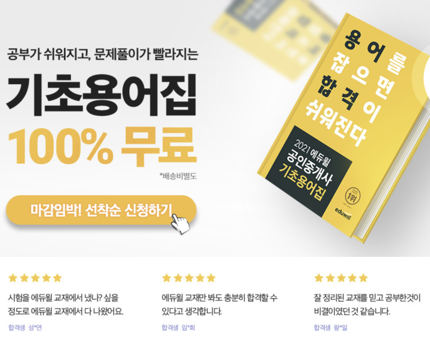 합격자가 많다는 건 교육도 교육이지만 컨텐츠도 퀄리티가 월등하다는 것을 말한다. 많은 학생들이 교재만 보고도 합격할 수 있을 거라고 이야기하고 있으며 교재와 강의를 들었을 때는 1년이면 누구나 하루 3시간 공부로 합격이 가능할 것이라고 생각하고 있다. 최근 교재와 별개로 기초용어집을 무료로 제공하고 있는데 이 기초용어집도 공부를 조금 한 사람들에게는 간편하게 들고 다닐 수 있는 핵심 노트로 자리매김하고 있다.