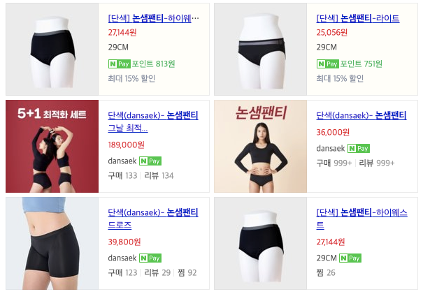 [ 논샘팬티 가격 ]