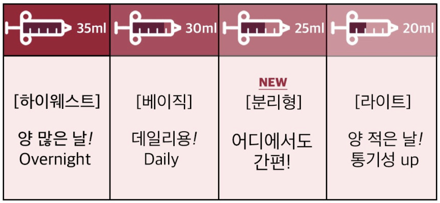 생리대를 사용하다가 조금 잦아들 때쯤 사용한다고 생각하면 불만 없이 사용 가능하다.