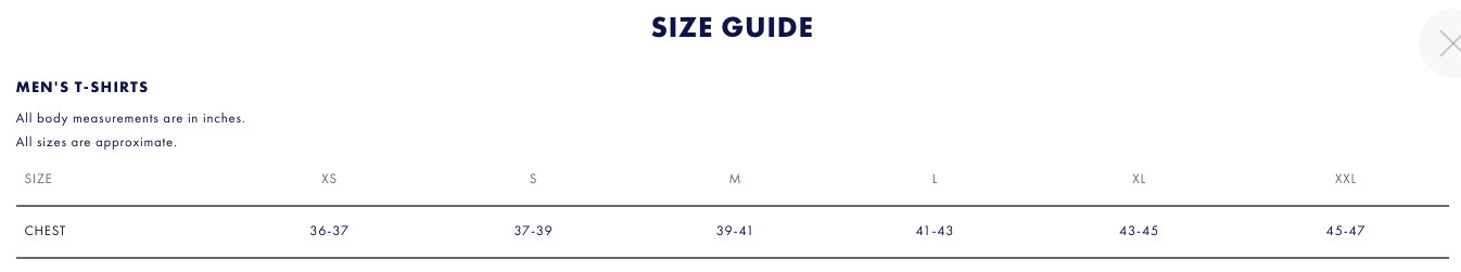 사이즈 가이드를 보면 CHEST 부분이 나오는데 105가 바로 41~43이다.