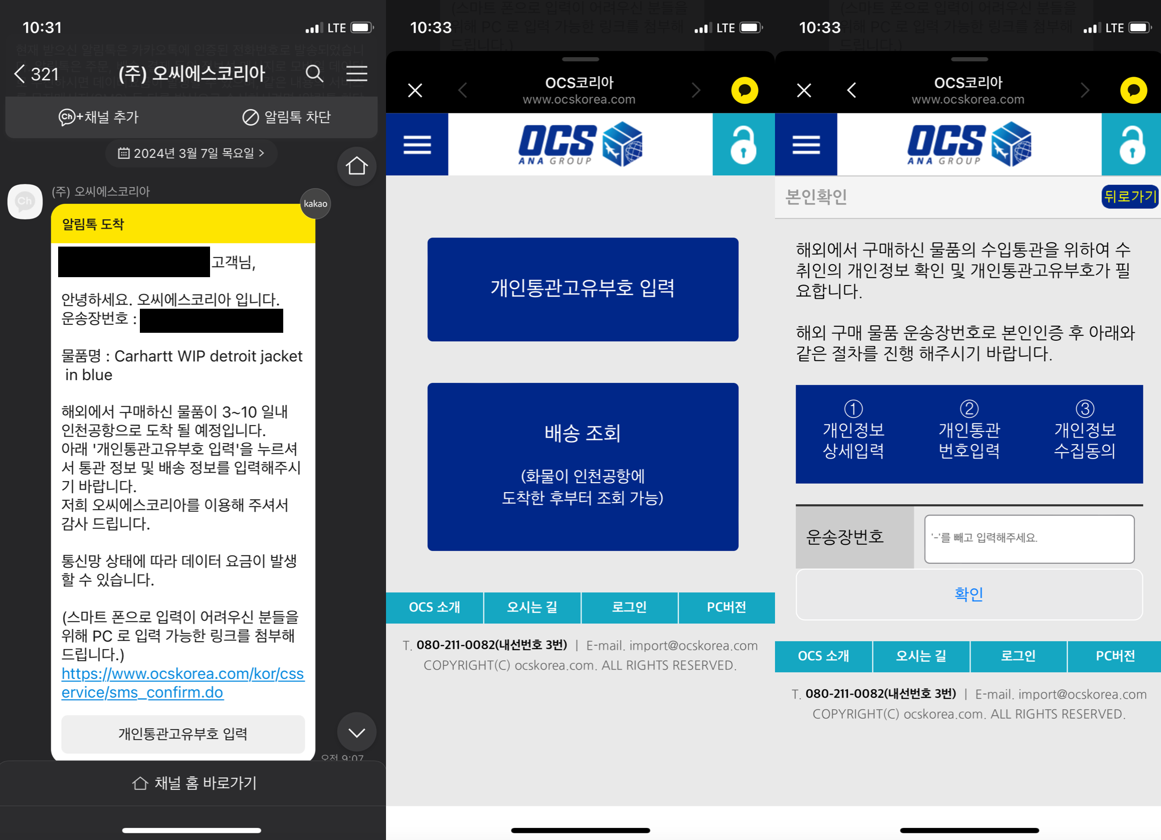 운송장 번호를 넣으면 본인 확인이 되고 통관번호를 넣으면 완료가 된다.