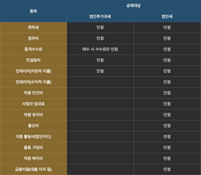 법인추과과세까지만 보면 법인의 이득이 없어 보인다. 하지만 법인세로 넘어가면 공제받을 수 있는 필요경비 항목이 대폭 늘어난다.