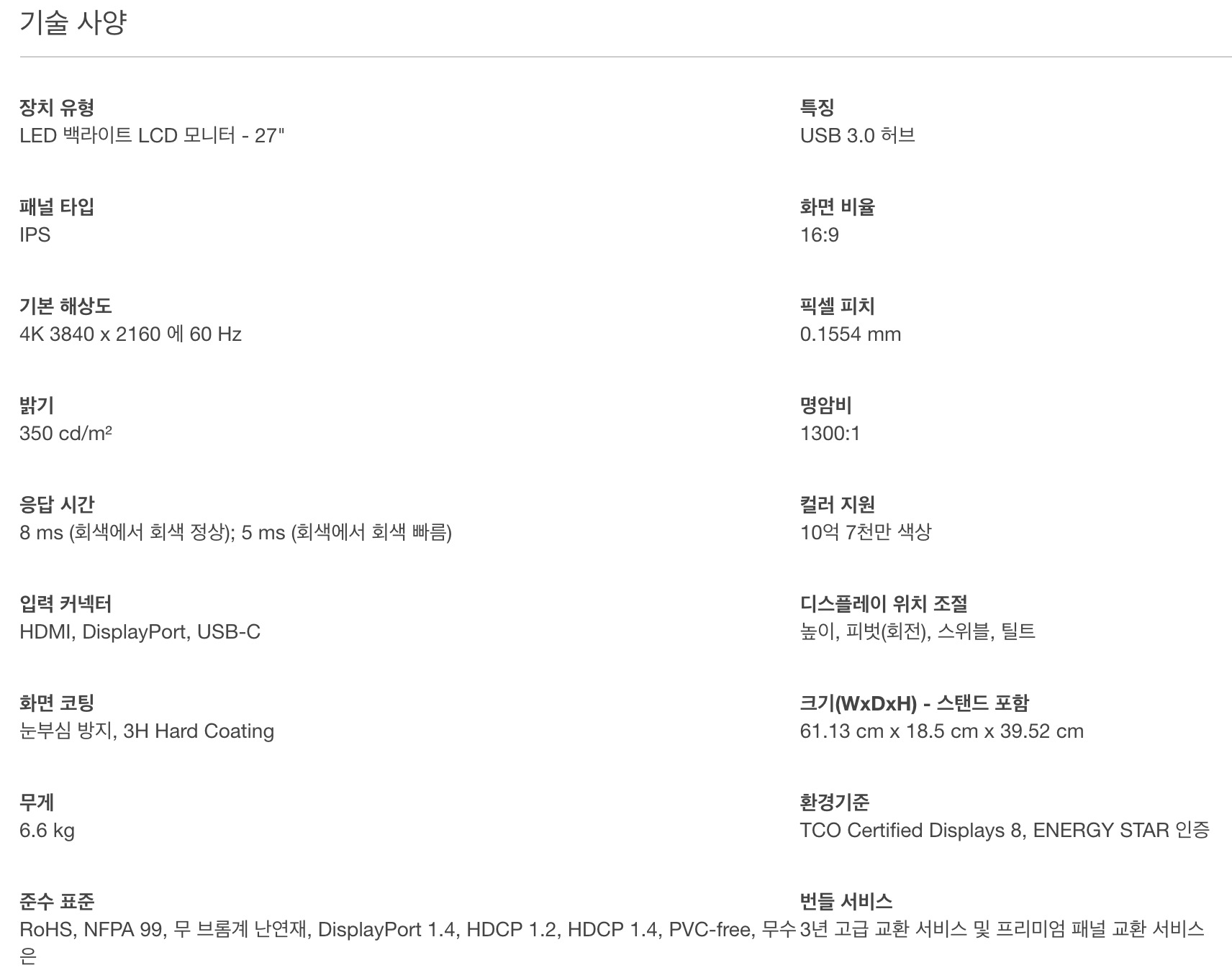 너무나 안좋은 눈은 더이상 도트가 보이는 화면에서 벗어나고 싶었다. 기본 10년은 무리없이 사용하고 싶었고 USB-C 혹은 썬보볼트를 지원하는 4k 모니터를 사고 싶었다. 물론 8K도 있고 5K도 있지만 코딩과 개발을 하는데 4K도 너무나 과분하기에 가성비 좋은 4K로 가기로 마음 먹었다.