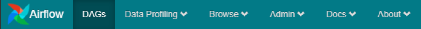 아래 명령어로 Airflow가 실행되면 웹으로 접근할 수 있다. Docker로 설치되었다면 "http://localhost:8080" 으로 접속이 된다. 접속하면 명령어가 잘 수행 되었다면 Airflow Bar 를 볼 수 있다. 이 Bar는 사용자가 사용하기 편하도록 여러 도구들을 제공한다.