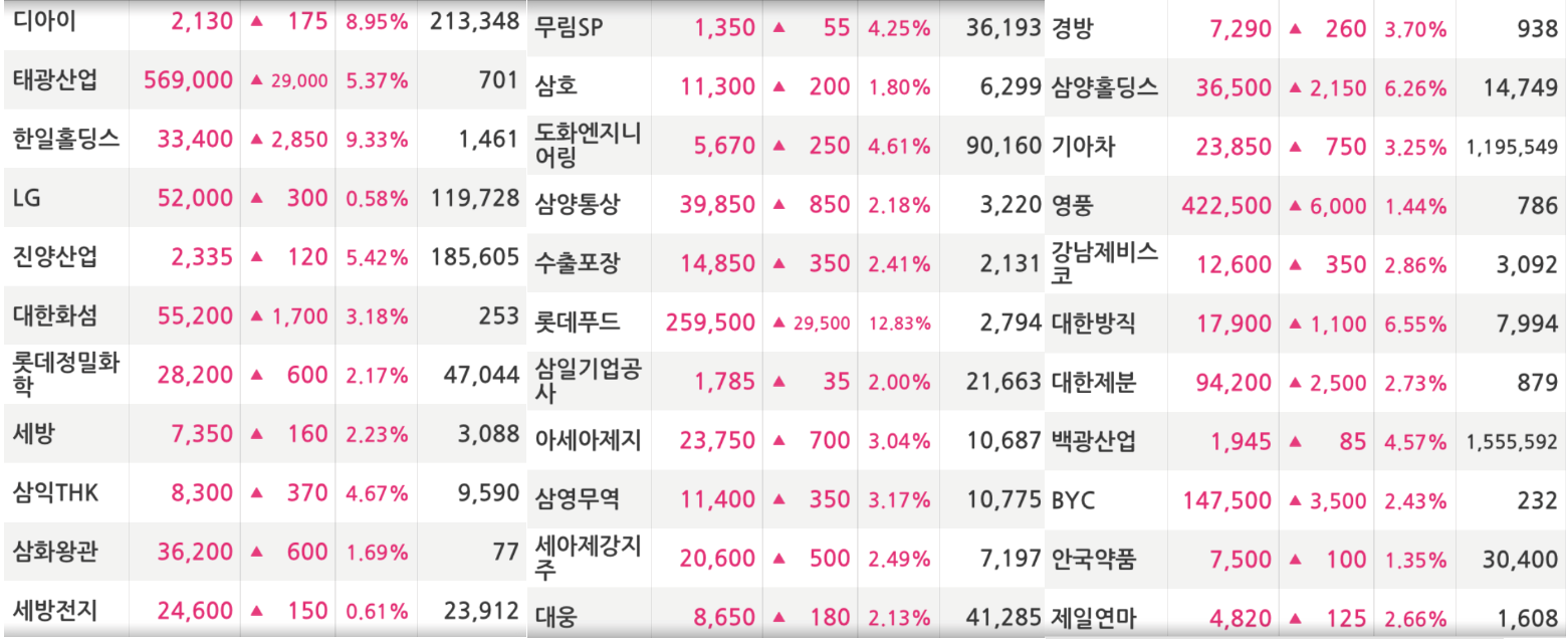 그럼 그에 해당하는 종목들을 볼 수 있다.