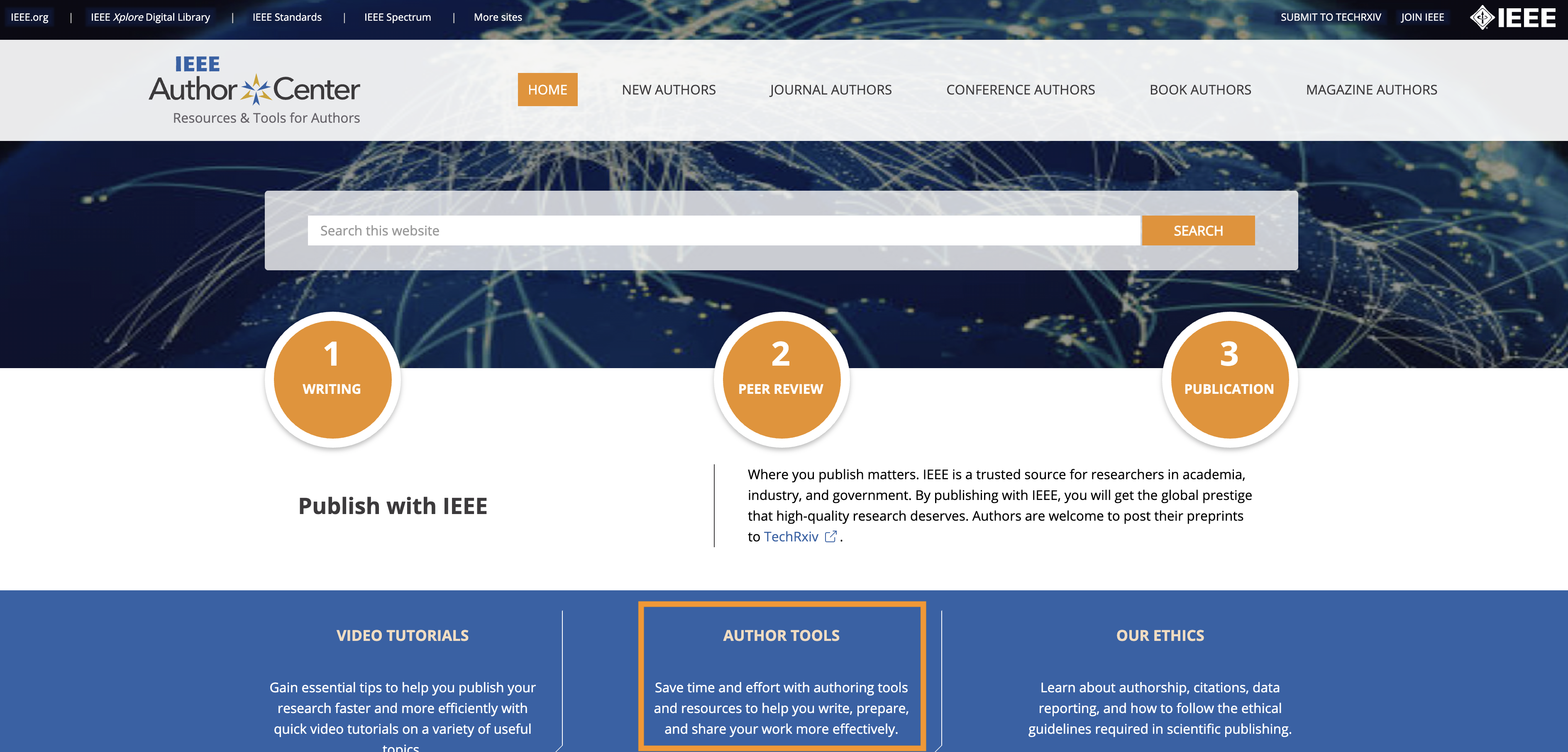 연구도 완료하고 논문에 대한 자료와 글도 완성되었다면 이제 논문의 템플릿에 넣는 과정을 거쳐야 한다. IEEE Access의 템플릿은 IEEEE Author Center에서 확인할 수 있다. 메인 페이지에서 "AUTHOR TOOLS"로 이동해서 IEEE Template Selector로 이동하면 원하는 템플릿을 다운로드할 수 있게 된다.